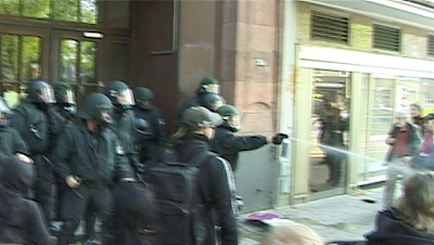 23. April 2011 - Der Polizist mit der Dienstnummer 6930 oder 6950 oder 6951 hat jedenfalls kurz darauf - unter Vortäuschung den Durchlass freizugeben - versucht der Filmerin gewaltsam die Kamera zu entreißen. "